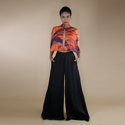 ORGANIC PRINTED HIGH SLIT BLACK AND WHITE SKIRT