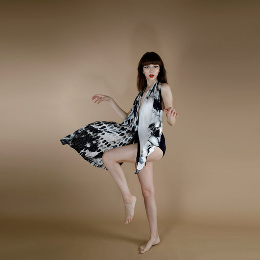 CALLA BLACK PRINTED ORGANIC ROSE PETAL FABRIC SCARF
