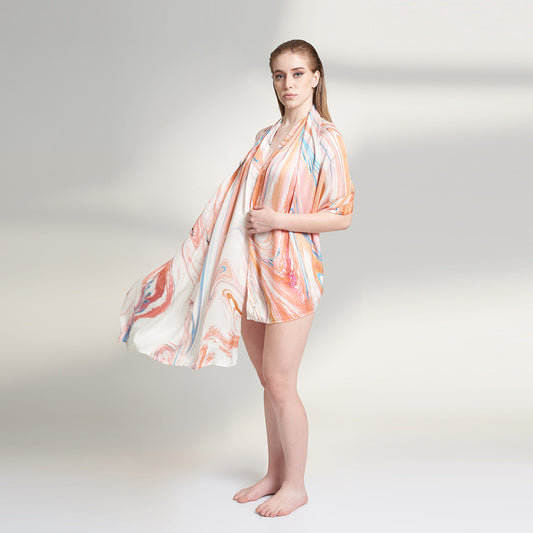 PINK PEACH POPPY DRIP PRINTED ORGANIC SCARF