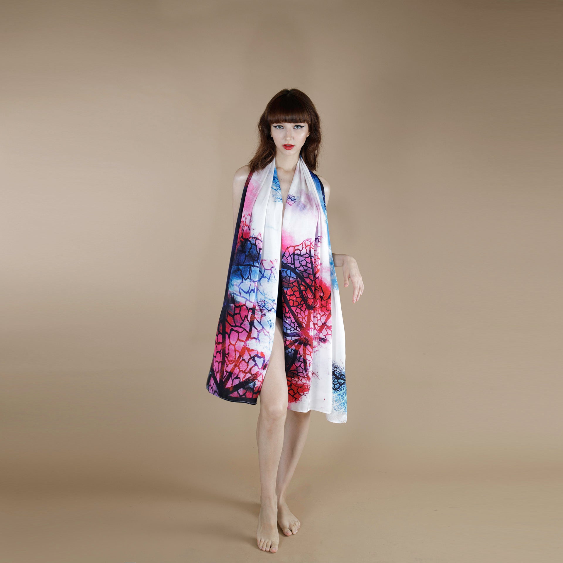 Scarf crafted in rose petal fabric, inspired by our Botanical Geometry Collection.